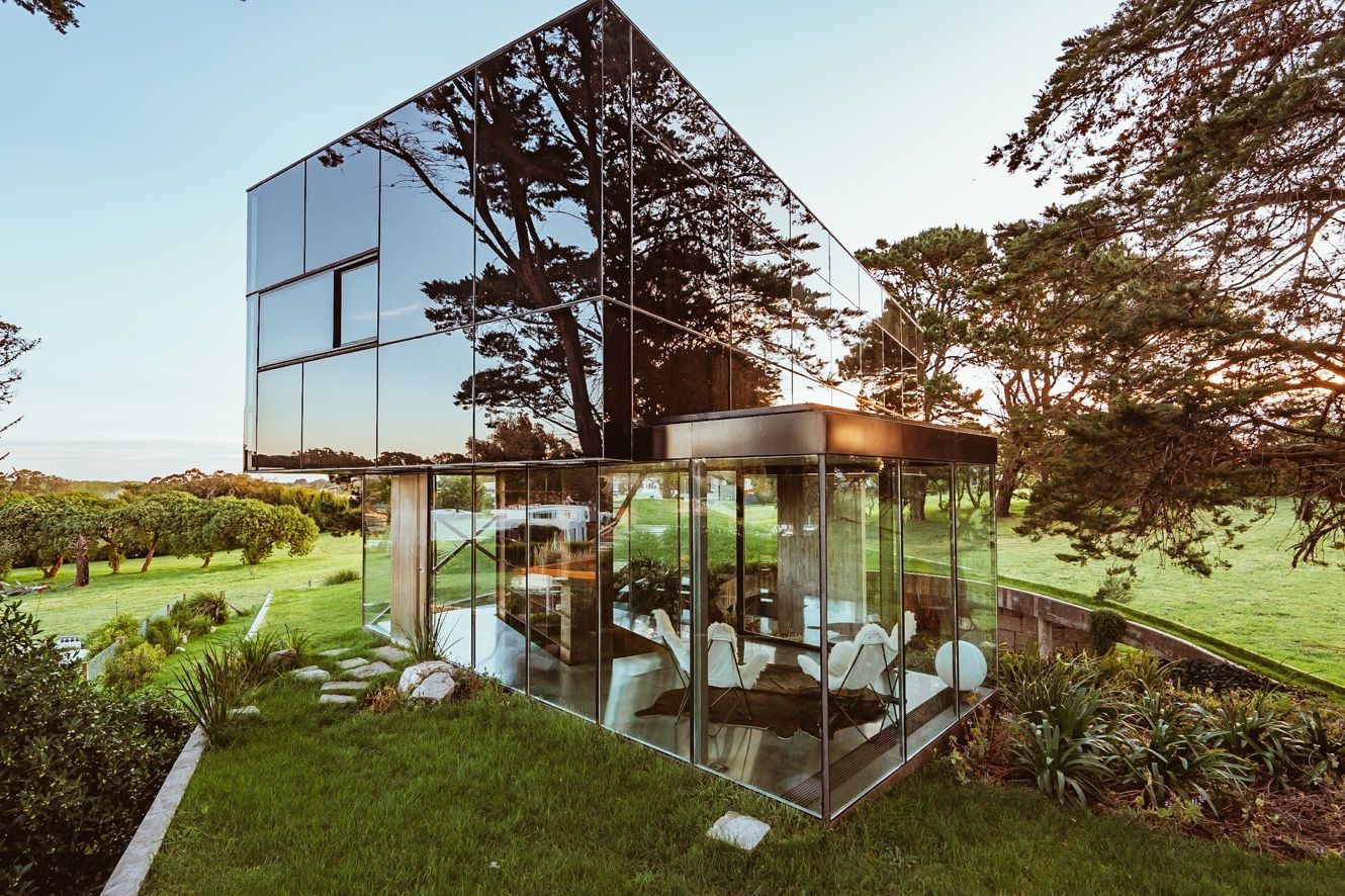 地表之上,一個極簡的鏡面量體輕盈懸浮,在天光下鏡射出樹冠雲朵和搖曳葉影,也倒映著森林的遼闊空曠;某些特定角度與光線下,更如同虛實共存的幻象——既存在、卻又消隱於視覺,回應既有自然的細節,也創造了一處新風景。