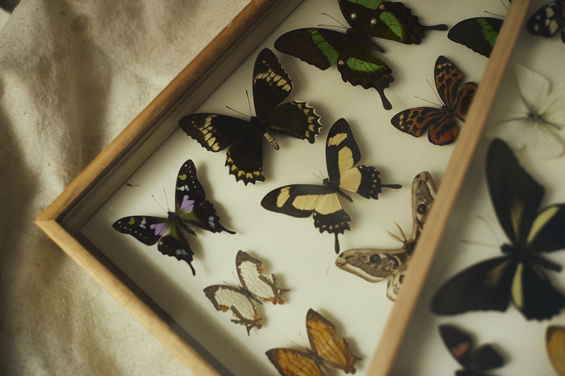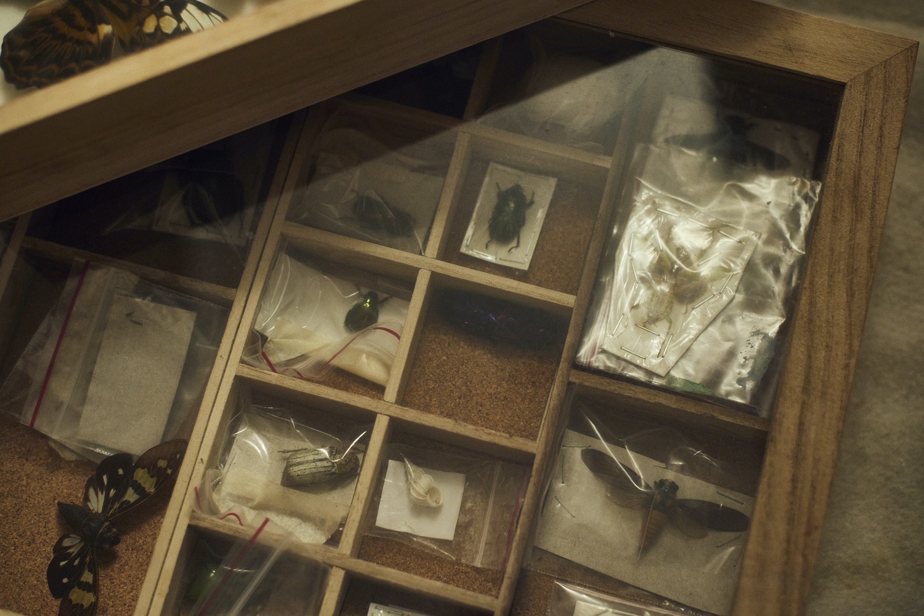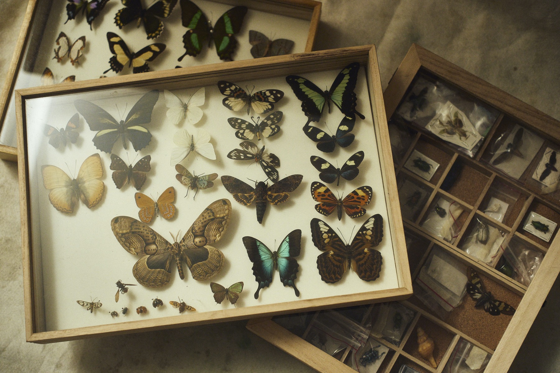 明明是人像繪畫作品,觀者卻似乎更重於將視線落向非人物的抽象圖案,「它引發觀者介入我的畫作,從中產生對話,去達到我想表現的個體內在差異性。」這樣的反饋讓洪永欣望見不一樣的視野,她捨棄人物元素,讓作品更直接傳達概念。這時,朋友贈送的昆蟲標本——一隻蝴蝶翩然飛抵,悄悄騷動著她對畫面的遼闊想像。