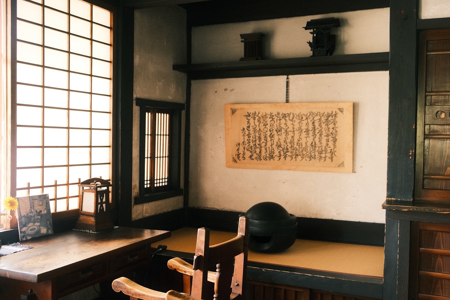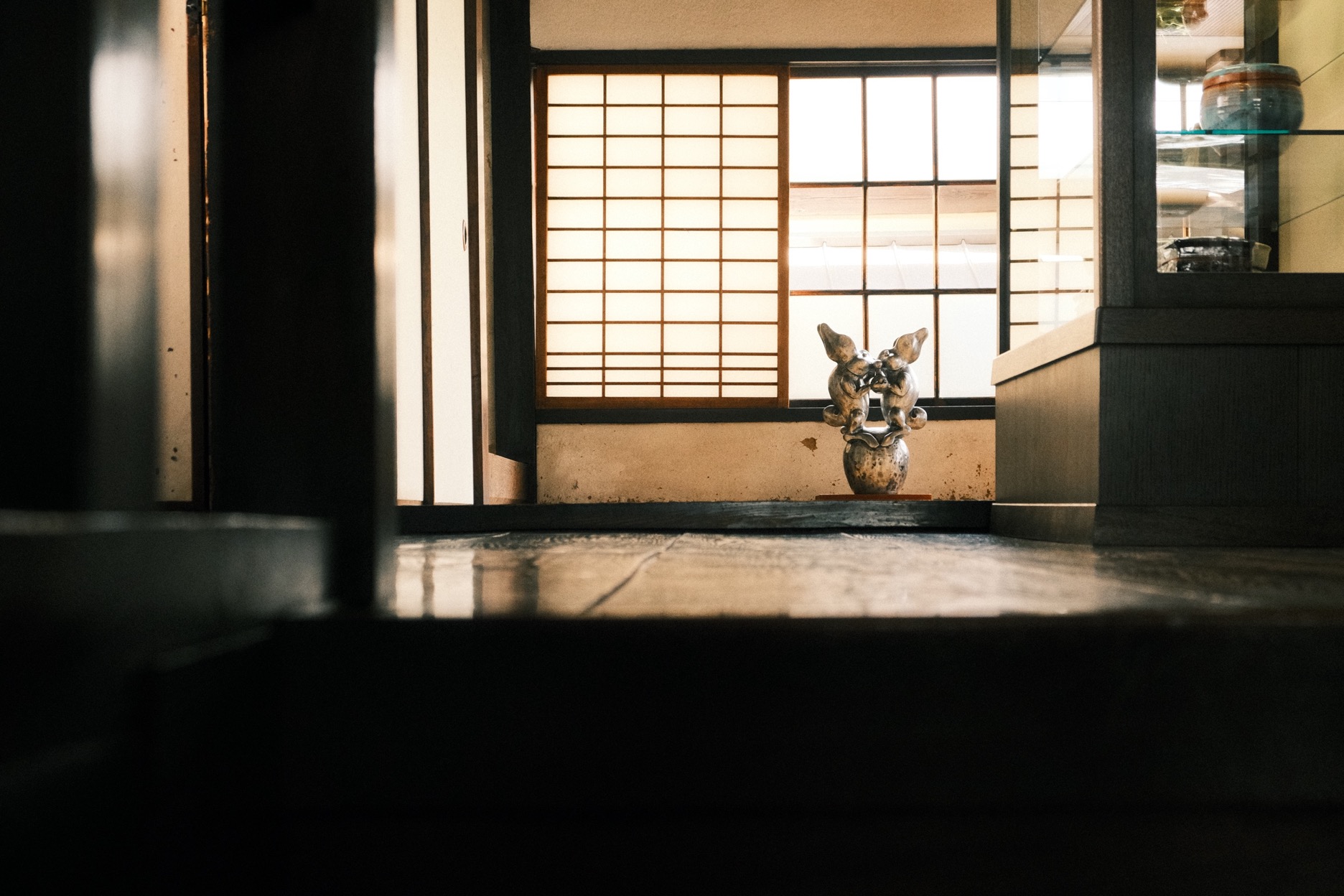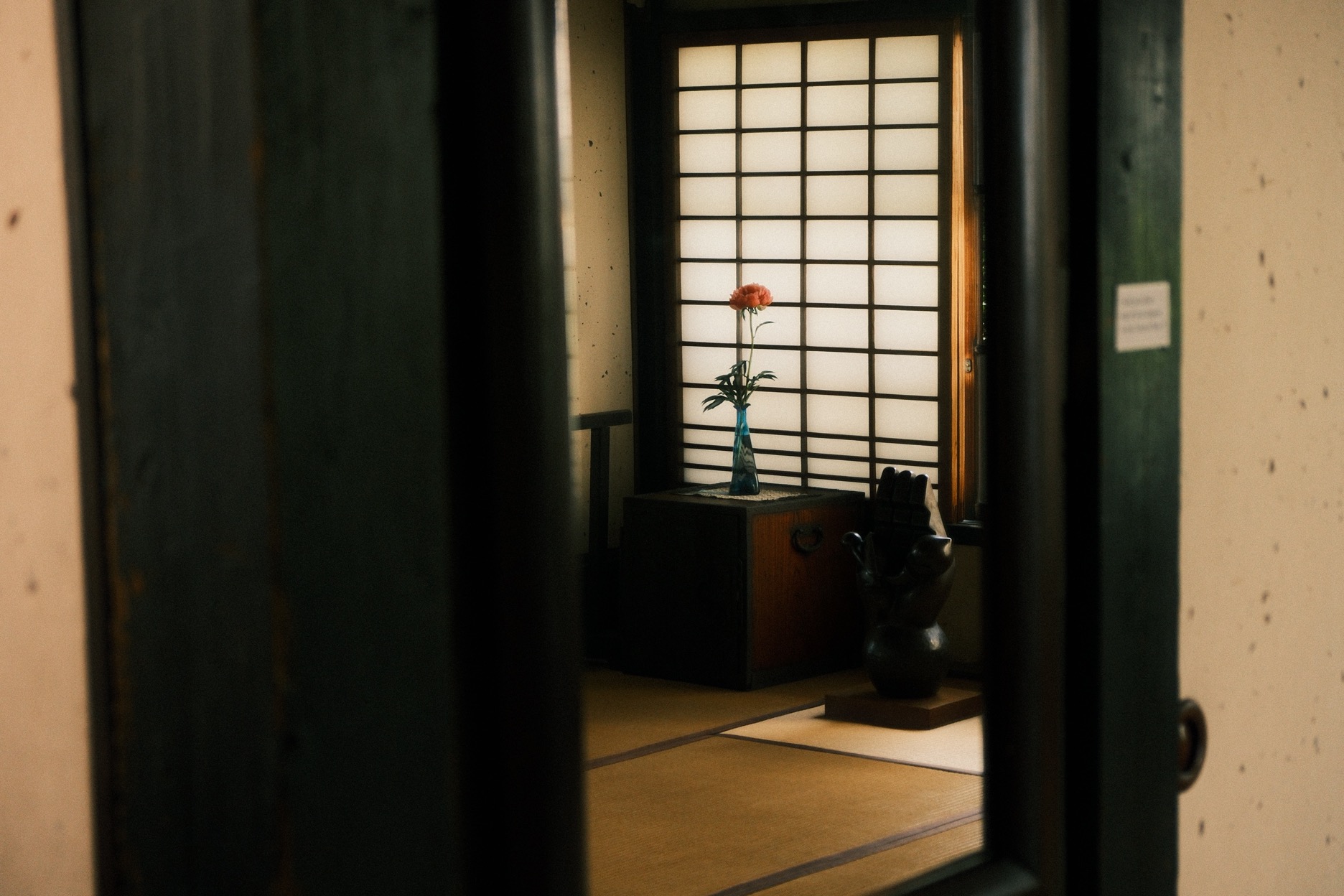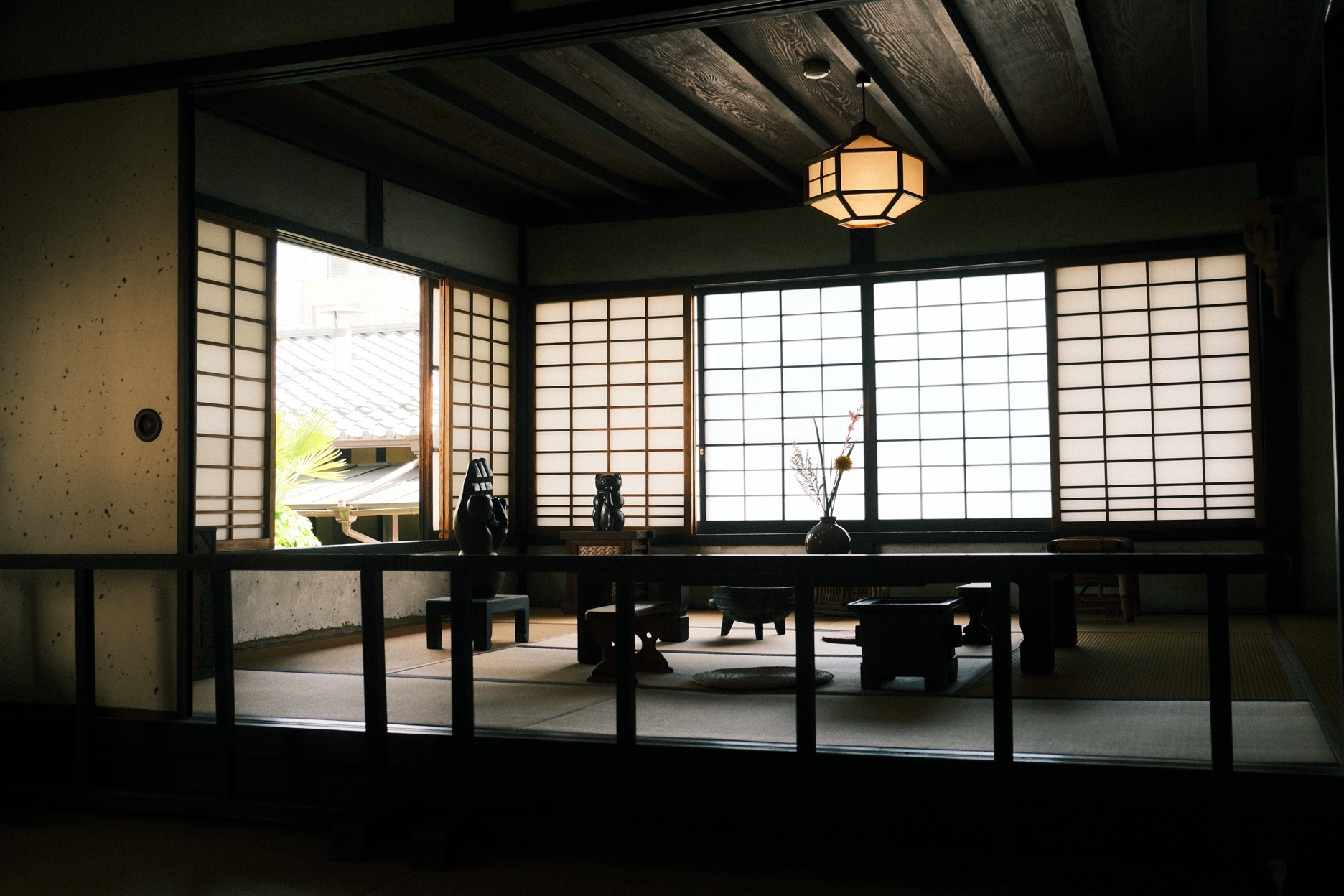 大文字山下的清水五條一帶悠緩如昔,雲削下來的層層明暗無聲飄落巷弄,即使是河井寬次郎的這座故居,在實際靠近字跡瀟灑的木招牌前,也幾乎難以想像成排褐色窗櫺板壁後,究竟藏著多深邃的世界。