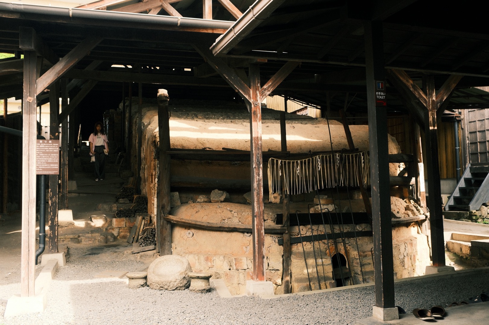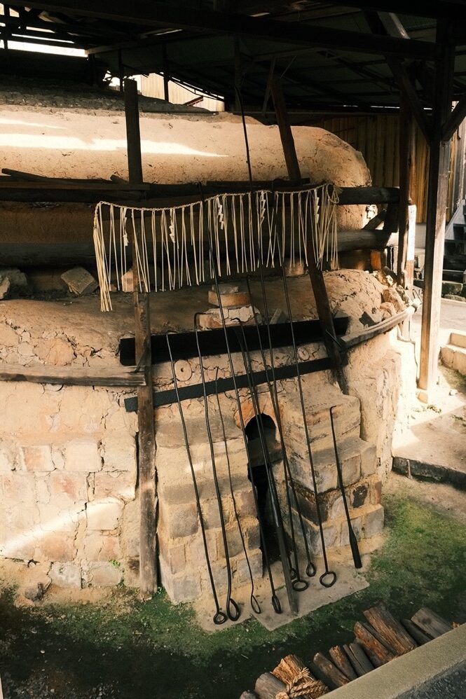 順著石子路再往深處探索,從前供左鄰右舍共用的登窯「鐘徯窯」頓時映入眼前,超過人體的巨型尺度,巍然體現出民藝精神。器物離不開柴米油鹽茶酒書畫,窯當然也緊鄰著起居的場域,等待人們帶素胚來此聚首,再捧著脫胎換骨後的成品散歸,回到晴耕雨讀的尋常韻律裡。