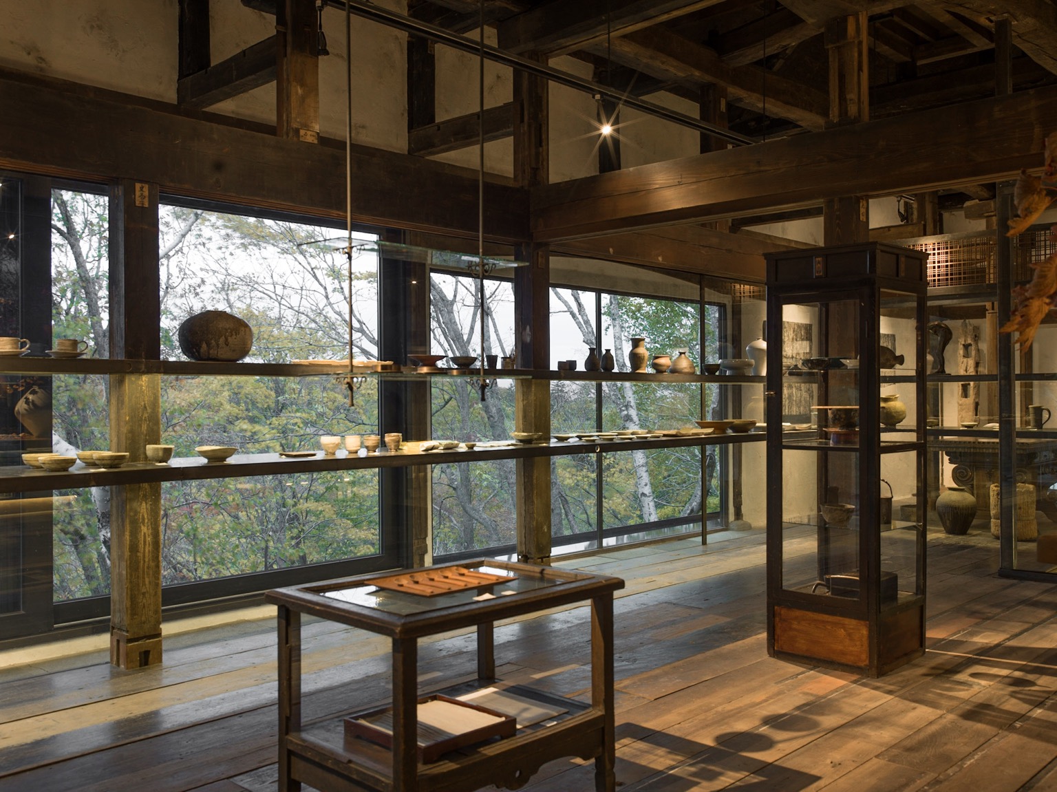 作為園區核心的畫廊餐廳 SOMOZA,一樓劈啪作響的柴火烘出一室暄暖,靜靜籠罩著創意總監 Shouya Grigg 的風景攝影作品,與豐富的阿伊努族民藝品、動物標本、香氛和古董交錯浮現。器物不語,光是一字排開來,便能接力傳遞著北海道曲折而恢宏的歷史。