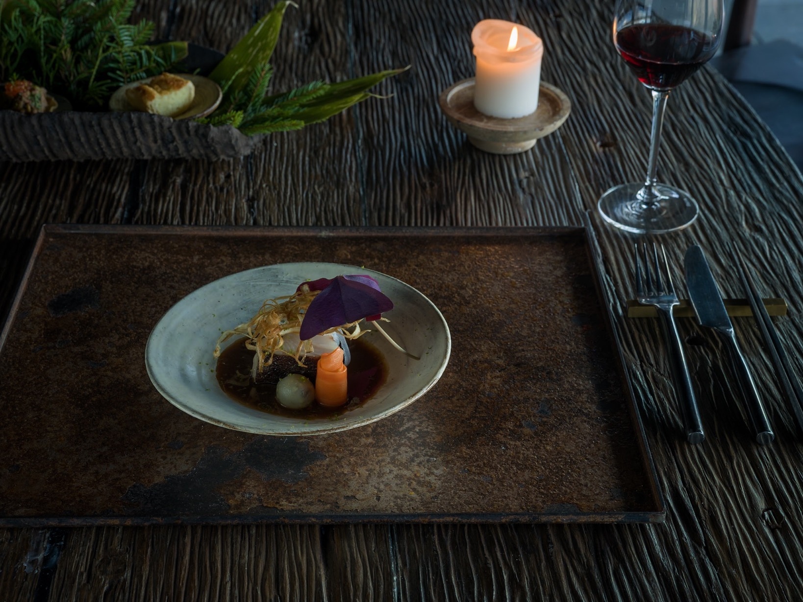 泡完湯、逛完藝廊,味蕾也隨著思緒一起變得清明,不妨彎回 SOMOZA 餐廳,用料理認識本地風土。主廚以阿伊努及繩文飲食文化為基礎,並融合法式風格重新詮釋成繽紛的創意料理,從農田到餐桌的距離不過咫尺,譬如晚餐的鹿肉餃佐松露醬汁,便搭配自家栽種的野生土當歸和地方美酒;早餐現烤核桃吐司與班尼迪克蛋乍看樸實,但只要嘗一口鄉村蔬菜濃湯,便彷彿參透了窗外層層峰巒與溪谷的香氣,感受到當下與悠遠的在地文化之間,那條幾乎被遺忘的細線,正循著豐盛的滋味一絲絲溫熱起來。