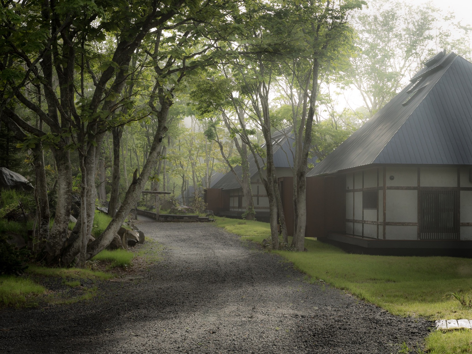 穿過蒼茫大地,苔綠色暖簾在風中輕揚,迷宮般的白色小徑蜿蜿蜒蜒通往 5 棟自本州遷運至此的古民家。一如移築而來的建築,SHIGUCHI 創意總監 Shouya Grigg 也並非當地人,在英國約克郡出生、成長,1994 年千里迢遙隻身來到一切未知的日本;倏忽 20 載,一轉眼已不算新住民的他,在人跡罕至的北端雪國生活多年後,成為推動北海道文化的攝影師與藝術家,更因聯合創辦屢獲殊榮的飯店「坐忘林」(Zaborin)而聞名。